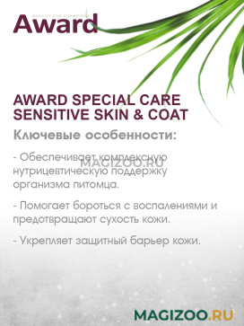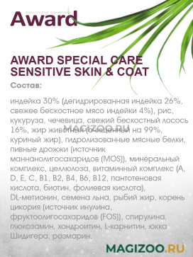 AWARD - это не просто корм, это функциональные рецептуры, которые работают. Выбирая AWARD, Вы выбираете осознанный подход к питанию Вашего питомца!