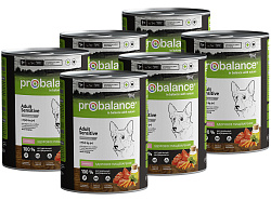 Консервы Probalance Adult Sensitive - отличное дополнение к сухому рациону. Влажный корм поможет разнообразить питание собак. А банка с ключом подходит для кормления даже крупных и гигантских питомцев всех пород.