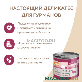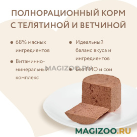 Полнорационный консервированный корм для собак паштет из телятины и ветчины.