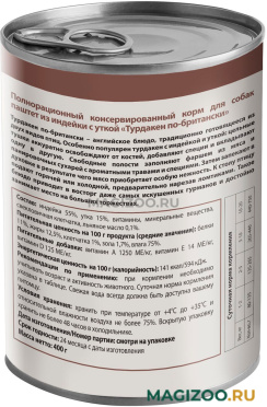 Полнорационный консервированный корм для собак паштет из индейки и утки.