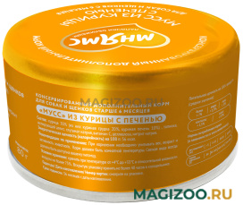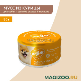 «Мнямс» консервированный дополнительный корм для собак и щенков старше 6 месяцев «мусс» из курицы с печенью гарантирует, что Ваш питомец получит только качественный и вкусный продукт, который прекрасно разнообразит рацион любимца, поддержит его здоровье и жизненную энергию.