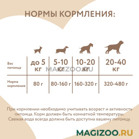 Важно учитывать индивидуальные потребности животного, включая его вес, возраст и уровень активности. Для собак разного веса предусмотрены различные нормы потребления, начиная от 80 г в день для собак весом до 5 кг и до 480 г для собак весом от 20 до 40 кг.