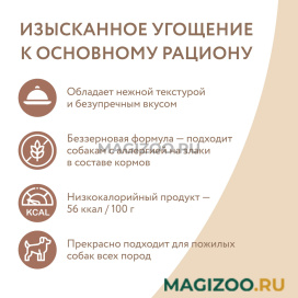 - Прекрасно подходит пожилым собакам, а также питомцам с аллергией на злаки в составе кормов.