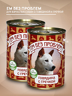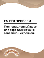Полнорационный корм для взрослых собак с говядиной и гречкой.