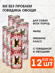 Полнорационный корм для взрослых собак с говядиной и овощами.