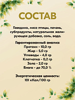 Говядина, субпродукты, овощи, растительное масло, соль.