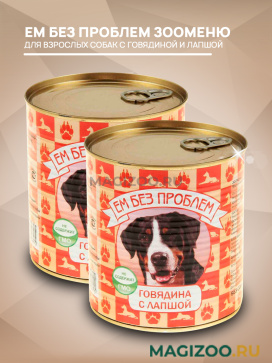 Полнорационный корм для взрослых собак с говядиной и лапшой.
