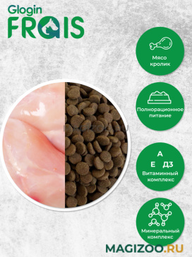 Мясо кролика используемое в кормах Frais, относится к классу гипоаллегренных и практически не вызывает нежелательных реакций у собак с чувствительным пищеварением.