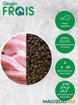 Мясо индейки используемое в кормах Frais, относится к классу гипоаллегренных и практически не вызывает нежелательных реакций у собак с чувствительным пищеварением.