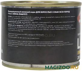 - Содержит до 66 % мяса в составе. Это позволяет покрыть потребность взрослой собаки в белке, а также значительно улучшить вкусовые качества влажного корма.