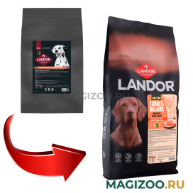 Полнорационный сухой корм Landor Medium & Maxi Adult для взрослых собак средних и крупных пород с индейкой и лососем.