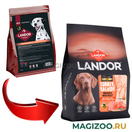 Полнорационный сухой корм Landor Medium & Maxi Adult для взрослых собак средних и крупных пород с индейкой и лососем.