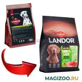 Полнорационный сухой корм Landor Medium & Maxi Adult для взрослых собак средних и крупных пород с индейкой и ягненком.