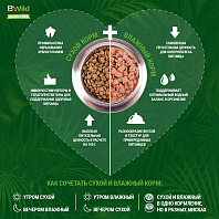 - Можно комбинировать с сухими кормами, кашами и овощами.