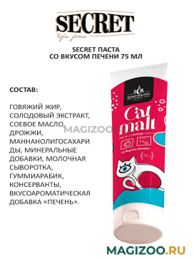 Паста SECRET для собак и кошек с уникальной формулой для вывода шерсти из желудка со вкусом печени.