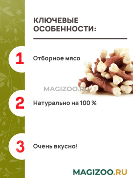 Состав: утиное филе, кальциевая косточка (рис, кукурузный крахмал, картофельный крахмал, растительный протеин, фосфат кальция, мука), пищевой глицерин, соль.