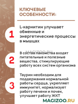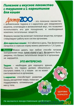 ДОКТОР ZOO с L-карнитином и таурином – это вкусное и полезное лакомство, которое дополнит ежедневный рацион Вашего питомца.