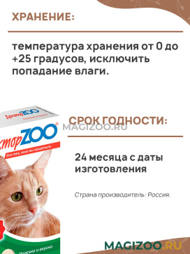 Информация о составе и ингредиентах, цветовом решении, технических и иных характеристиках, стране-изготовителе, внешнем виде и комплекте поставки товара носит справочный характер и основана на последних доступных к моменту публикации сведениях. Доставка данного товара осуществляется во все регионы РФ.ДОКТОР ZOO - товары для домашних животных, которые выпускаются вот уже 17 лет