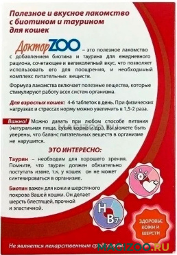 ДОКТОР ZOO с биотином и таурином - это вкусное и полезное лакомство, которое дополнит ежедневный рацион Вашего питомца.