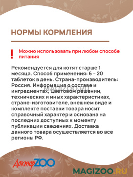 Информация о составе и ингредиентах, цветовом решении, технических и иных характеристиках, стране-изготовителе, внешнем виде и комплекте поставки товара носит справочный характер и основана на последних доступных к моменту публикации сведениях. Доставка данного товара осуществляется во все регионы РФ.ДОКТОР ZOO - товары для домашних животных, которые выпускаются вот уже 17 лет