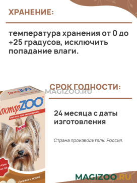 Информация о составе и ингредиентах, цветовом решении, технических и иных характеристиках, стране-изготовителе, внешнем виде и комплекте поставки товара носит справочный характер и основана на последних доступных к моменту публикации сведениях. Доставка данного товара осуществляется во все регионы РФ.ДОКТОР ZOO - товары для домашних животных, которые выпускаются вот уже 17 лет