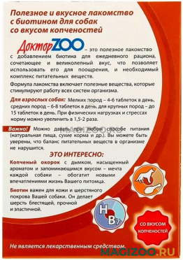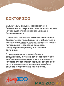 ДОКТОР ZOO с копченостями и биотином - это вкусное и полезное лакомство, которое дополнит ежедневный рацион Вашего питомца.