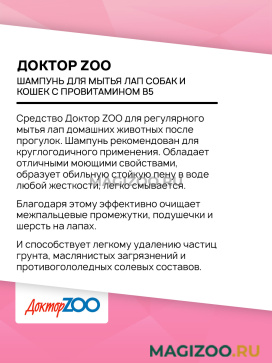 Средство Доктор ZOO для регулярного мытья лап домашних животных после прогулок.