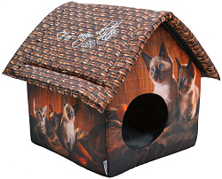 - Домики для кошек. Они очень удобны и прекрасно защищают животное от сквозняков. У нас представлены тоннели, юрты, арки, пещеры и другие изделия, которые гармонично вписываются в интерьер;