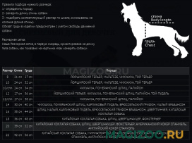 Размерная сетка, в первую очередь, ориентирована на длину тела собаки, как показано на картинке «Как измерять собаку».
