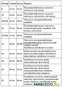 Размерная сетка, в первую очередь, ориентирована на длину тела собаки, как