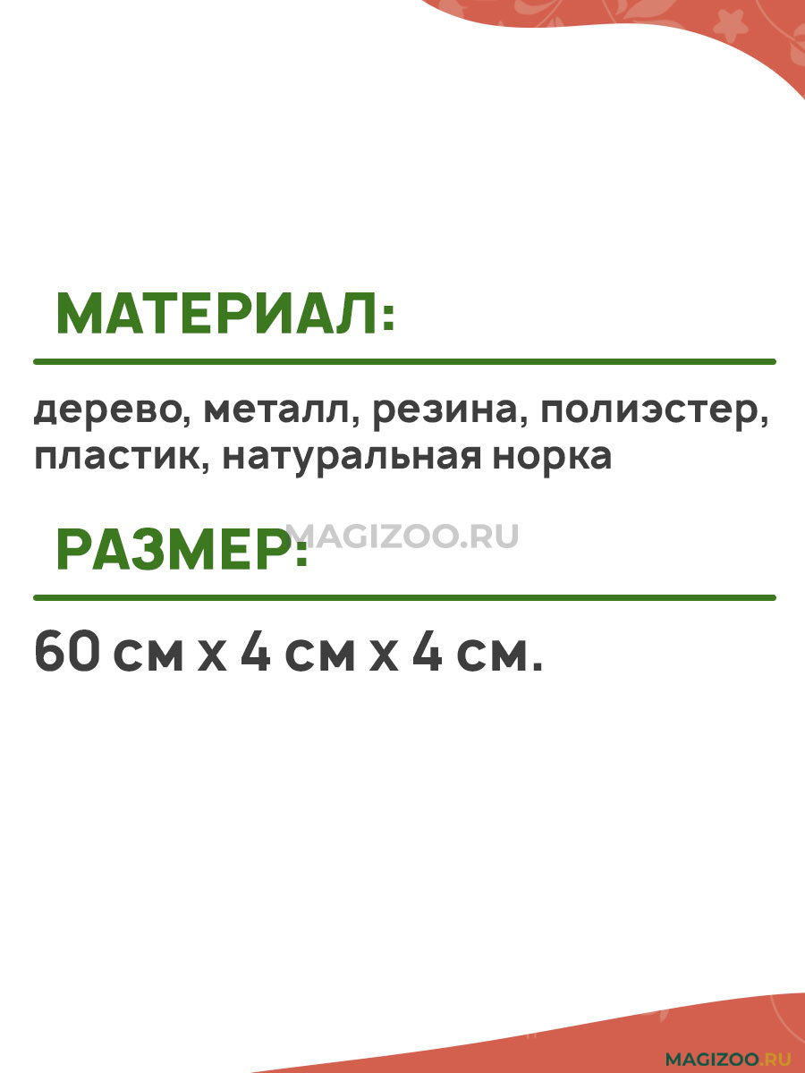 Материал: дерево, металл, резина, полиэстер, пластик, натуральная норка.
