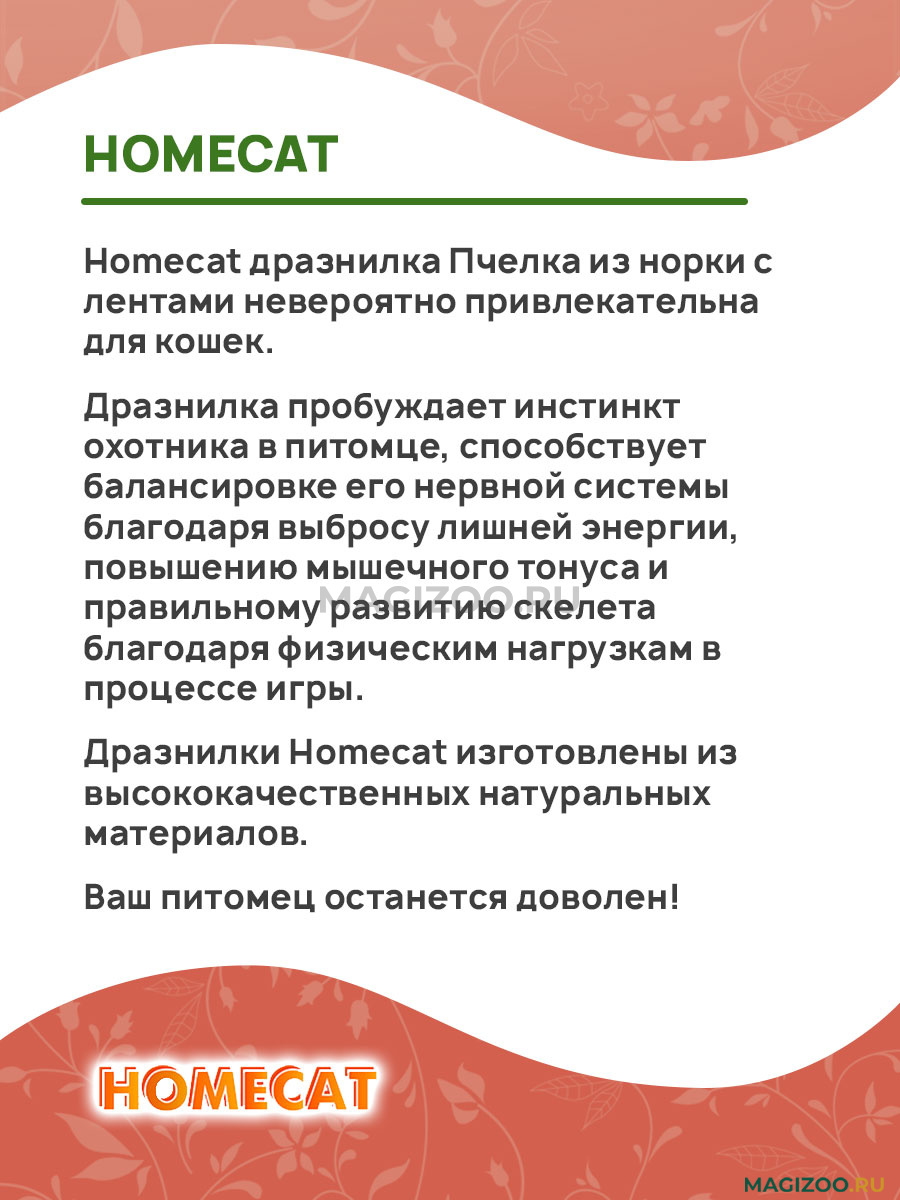 Homecat дразнилка Пчелка из норки с лентами невероятно привлекательна для кошек.
