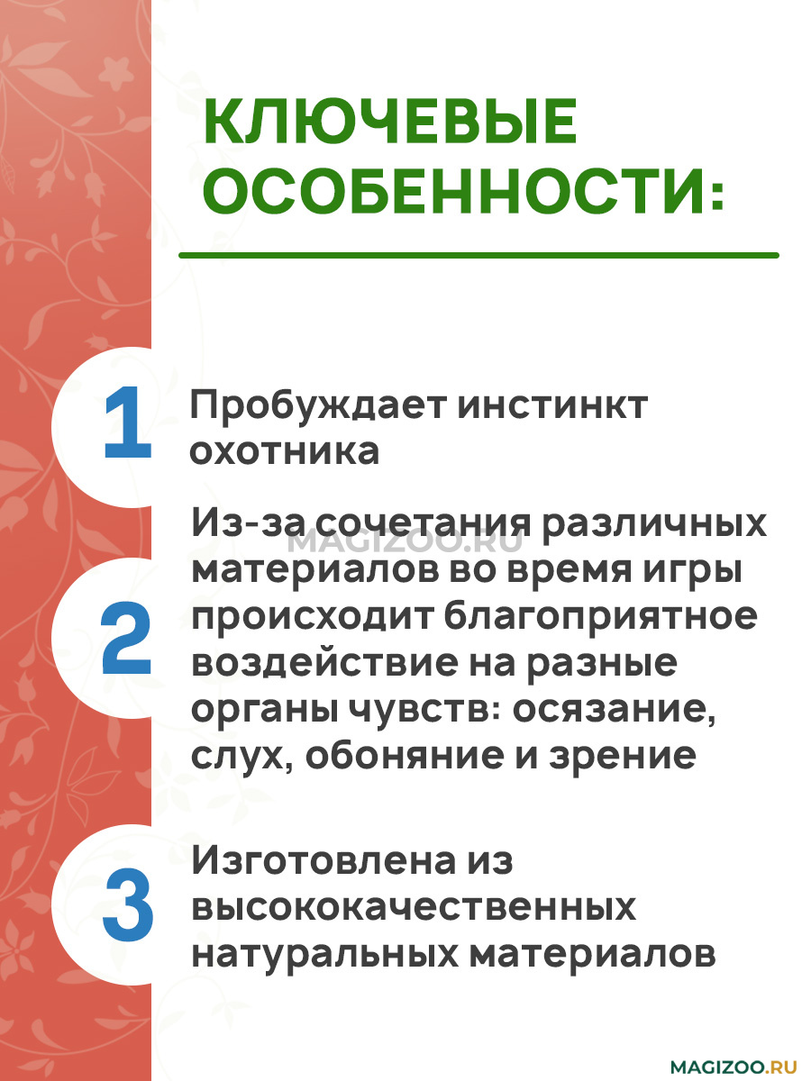 Игрушка - дразника не даст питомцу заскучать. Помогает поддерживать физическую форму. Удовлетворяет естественные потребности животного в охоте. Помогают установить контакт между кошкой и хозяином.