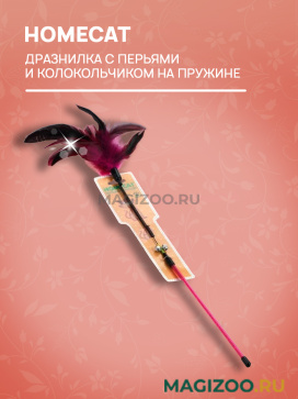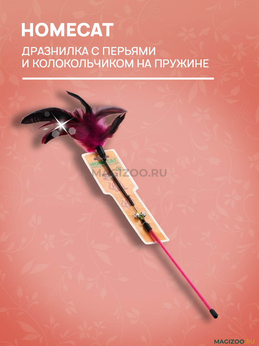 Занимательная игрушка для кошек Homecat "Дразнилка с перьями с колокольчиком". Дразнилки Homecat изготовлены из натуральных материалов. Они невероятно привлекательны для кошек, пробуждают инстинкт охотника, способствуют балансировке нервной системы благодаря выбросу лишней энергии, повышению мышечного тонуса, правильному развитию скелета благодаря физическим нагрузкам в процессе игры. Из-за сочетания различных материалов во время игры происходит благоприятное воздействие на разные органы чувств: осязание, слух, обоняние и зрение. Ваш питомец останется доволен!