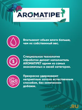 Информация о составе и ингредиентах, цветовом решении, технических и иных характеристиках, стране-изготовителе, внешнем виде и комплекте поставки товара носит справочный характер и основана на последних доступных к моменту публикации сведениях. Доставка данного товара осуществляется во все регионы РФ.AromatiPet производят древесный наполнитель по особой технологии, благодаря которой: