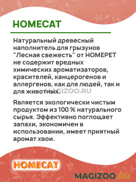 Натуральный древесный наполнитель для грызунов "Лесная свежесть" от HOMEPET не содержит вредных химических ароматизаторов, красителей, канцерогенов и аллергенов, как для людей, так и для животных.