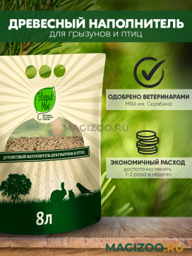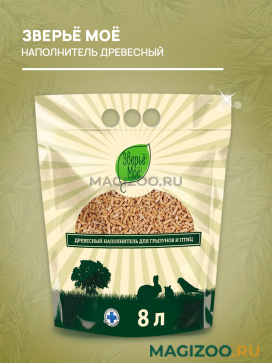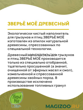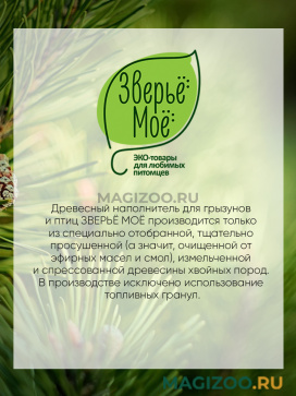 Экологически чистый наполнитель для грызунов и птиц ЗВЕРЬЁ МОЁ изготовлен из опилок натуральной древесины, спрессованных по специальной технологии.