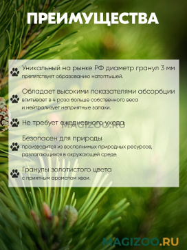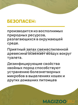 Дезинфицирующие свойства хвойных пород способствуют устранению болезнетворных микробов в выделениях кошек и других домашних питомцев.