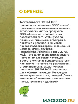 Информация о составе и ингредиентах, цветовом решении, технических и иных характеристиках, стране-изготовителе, внешнем виде и комплекте поставки товара носит справочный характер и основана на последних доступных к моменту публикации сведениях. Доставка данного товара осуществляется во все регионы РФ.ООО «Идеал» четырнадцать лет работает для того, чтобы уход за любимыми питомцами стал проще, приятнее и удобнее, и Вы могли проводить больше времени со своими четвероногими друзьями. Наполнители, опилки и сено ЗВЕРЬЁ МОЁ — это залог здоровья и хорошего настроения для Ваших питомцев.