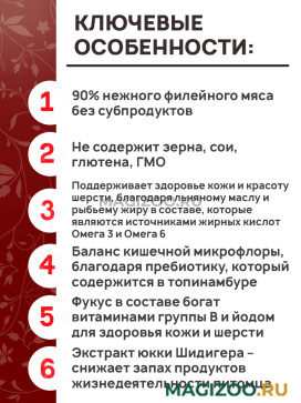 - Фукус в составе богат витаминами группы В и йодом для здоровья кожи и шерсти.