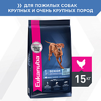 Полноценный сбалансированный корм для зрелых и пожилых собак старше 5 – 6 лет, крупных пород весом от 25 до 40 кг и гигантских пород весом от 40 кг и более, на основе мяса цыплёнка: