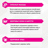 На 100 % сбалансированный рацион, поддерживает здоровье кошки по шести ключевым признакам и обеспечивает отличную физическую форму. Помогает поддерживать оптимальный вес тела за счет L-карнитина и уменьшения доли жира на 40 %.