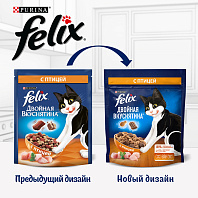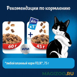Любопытство Вашего кота заложено природой! И бренд Felix® снова придумал, как его удовлетворить. Представляем Felix® Двойная Вкуснятина® – сухой корм для кошек, который полностью соответствует потребностям Вашего озорника. Восхитительное сочетание двух текстур в одной упаковке: хрустящие гранулы смешаны с мягкими кусочками для создания невероятного вкуса, перед которым невозможно устоять! Широкий ассортимент позволит коту наслаждаться разнообразием мясных или рыбных вкусов с соблазнительными ароматами.