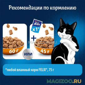 Совет от Felix®: Вы пробовали комбинировать сухой и влажный корм в ежедневном рационе Вашего кота? Попробуйте! Ведь теперь Felix® доступен в обоих рационах.