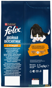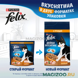 Felix® Двойная Вкуснятина® - первый сухой корм, созданный под брендом Felix® для находчивого кота, который знает толк во вкусной еде.
