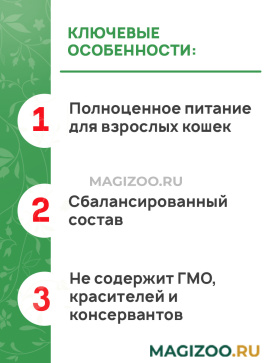 В корме 36% Мясных ингредиентов, а еще нет ГМО, сои, консервантов, ароматизаторов, усилителей вкуса и искусственных красителей. Кот Фёдор рекомендует!