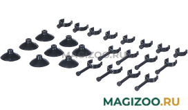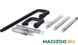 Фильтр комплектуется всеми необходимыми аксессуарами: фильтрующие материалы, трубки забора и выброса воды, комплект шлангов и присосок для крепления трубок, флейта.