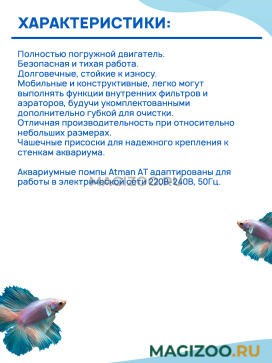 Внешние канистровые фильтры Atman DF адаптированы для работы в электрической сети 220В-240В, 50Гц.