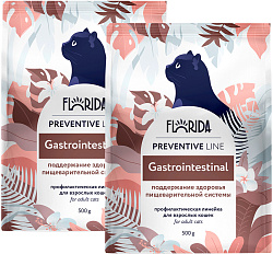 Полнорационный сбалансированный корм для кошек Florida Preventive Line Gastrointestinal предназначен для поддержания здоровой работы желудочно-кишечного тракта.