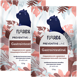 Полнорационный сбалансированный корм для кошек Florida Preventive Line Gastrointestinal предназначен для поддержания здоровой работы желудочно-кишечного тракта.